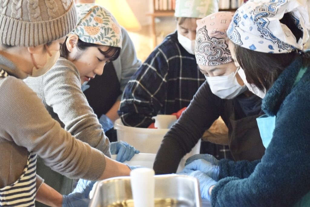 初めてのみそづくりの方も、経験のある方も、「これでいいかな?」「このくらい?」と確かめ合いながら、自分だけのみそを丁寧に仕込みました。
